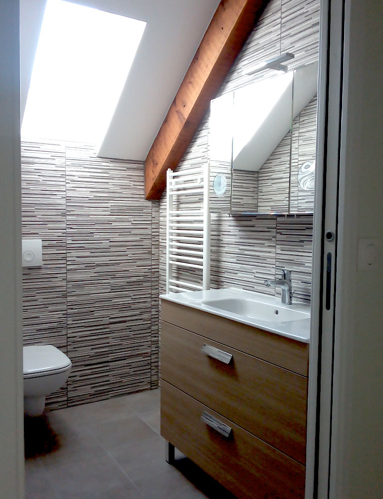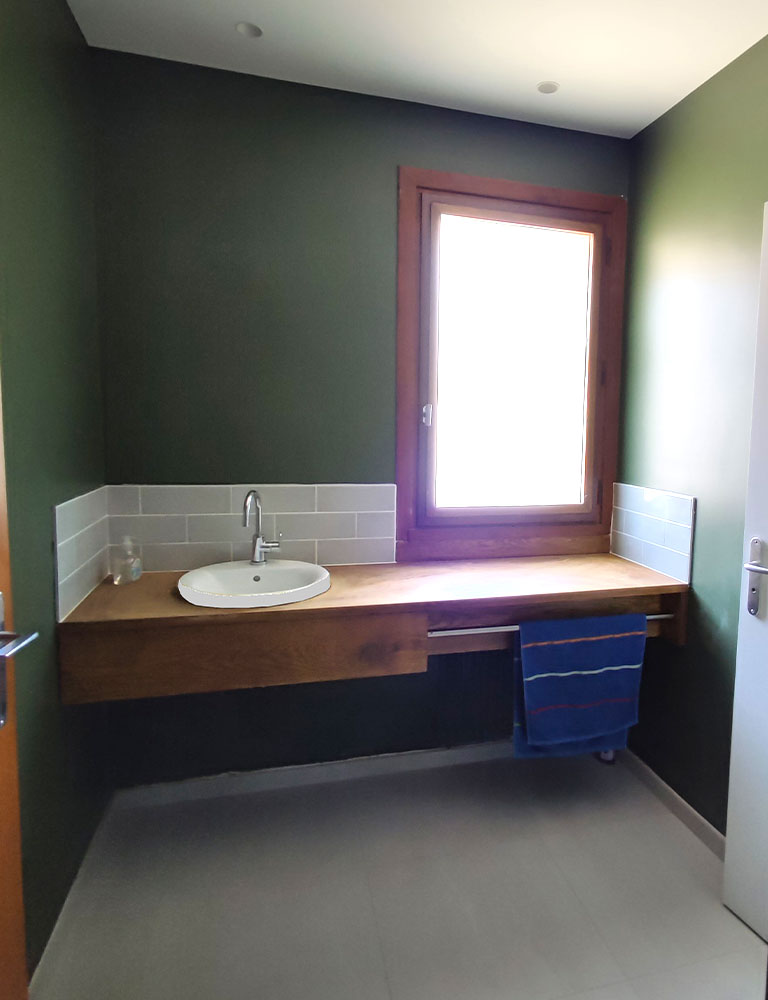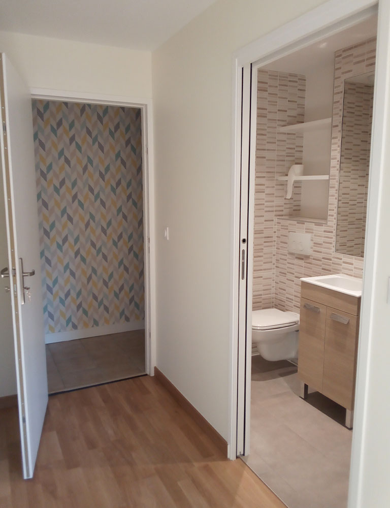 Les équipements et matériaux sont basics et d’entretien facile afin de leur maintenir un aspect neuf. Les agencements permettent des rangements discrets qui n’encombrent pas l’espace restreint.