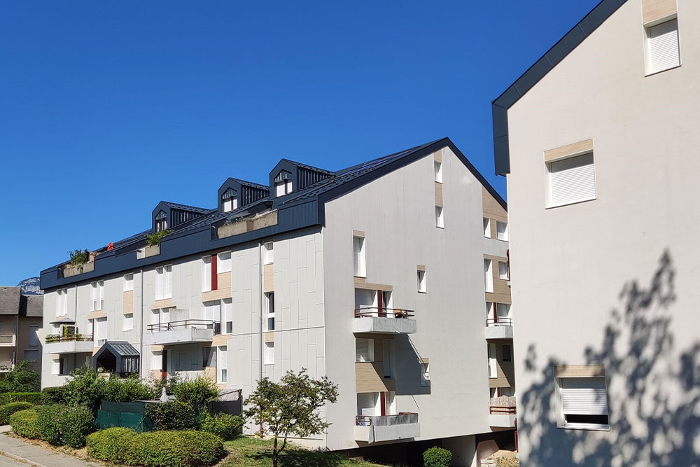 Le programme comprenait l’isolation de l’ensemble des parois, le remplacement des menuiseries, de la couverture et des matériaux de façade, aussi à l’intérieur la rénovation des aspects fluides en relation.